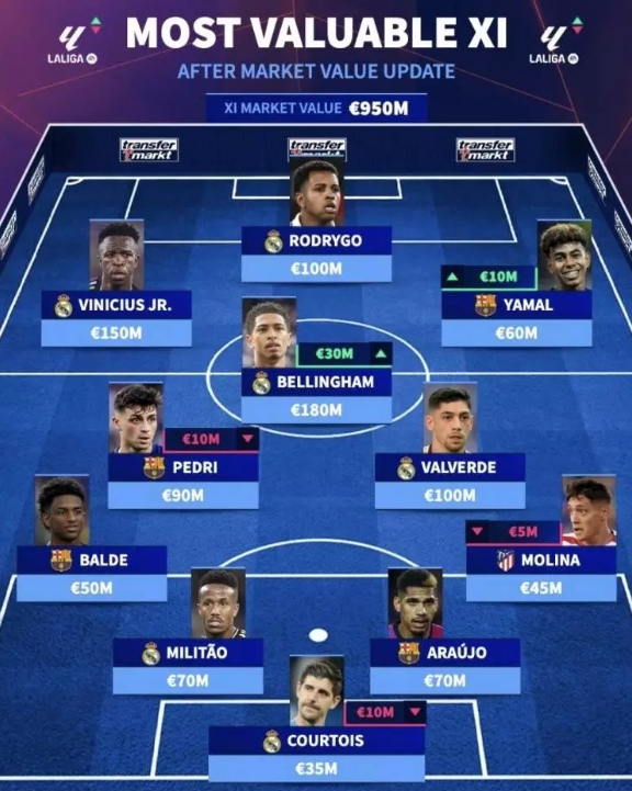 西甲最贵11人阵容是怎样的?